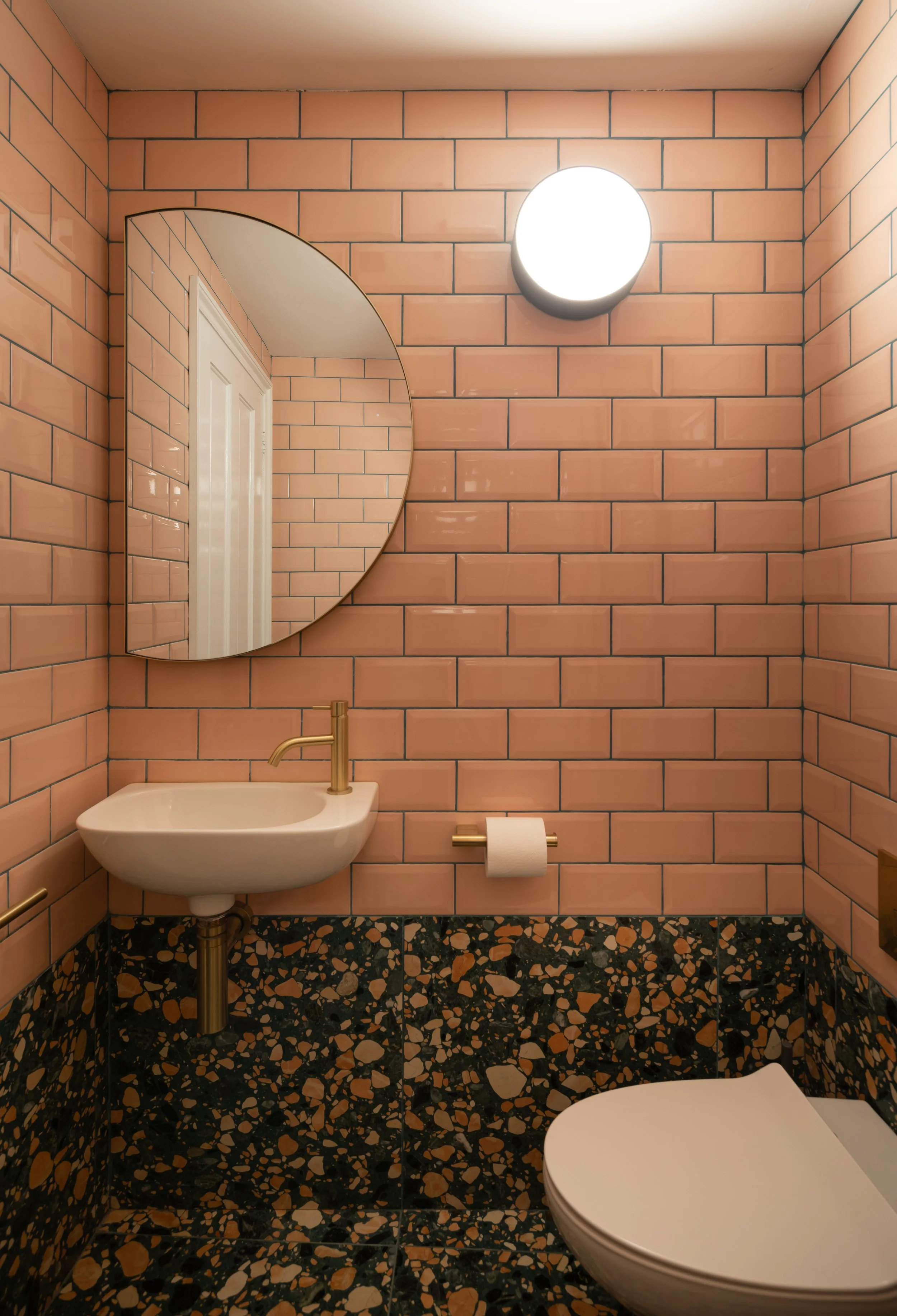 A new powder room with its unique style has been introduced to revamp the living area on the lower ground floor .