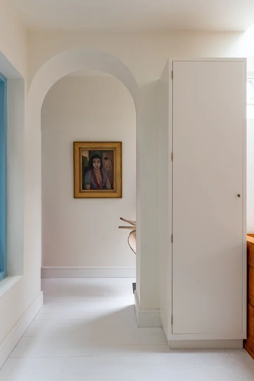 A new timber staircase picks up of the βfinβ aesthetic of the ground floor, whilst also having a connection with the Arts and Crafts detailing of the original house. Some original features have been maintained and restored - such as a fantastic fireplace, entrance alcove with Art Nouveau joinery.